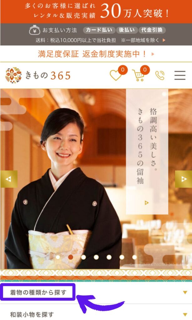 きもの365は、全国の呉服屋さんが着物を提供している着物の大型モールのようなサイトです。