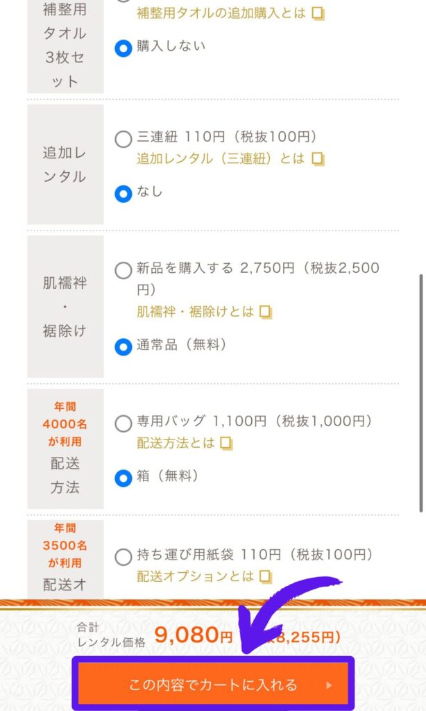 今回私が借りたような最安値(7,980円)の着物だと、そのままでは送料がかかってしまうんです。
