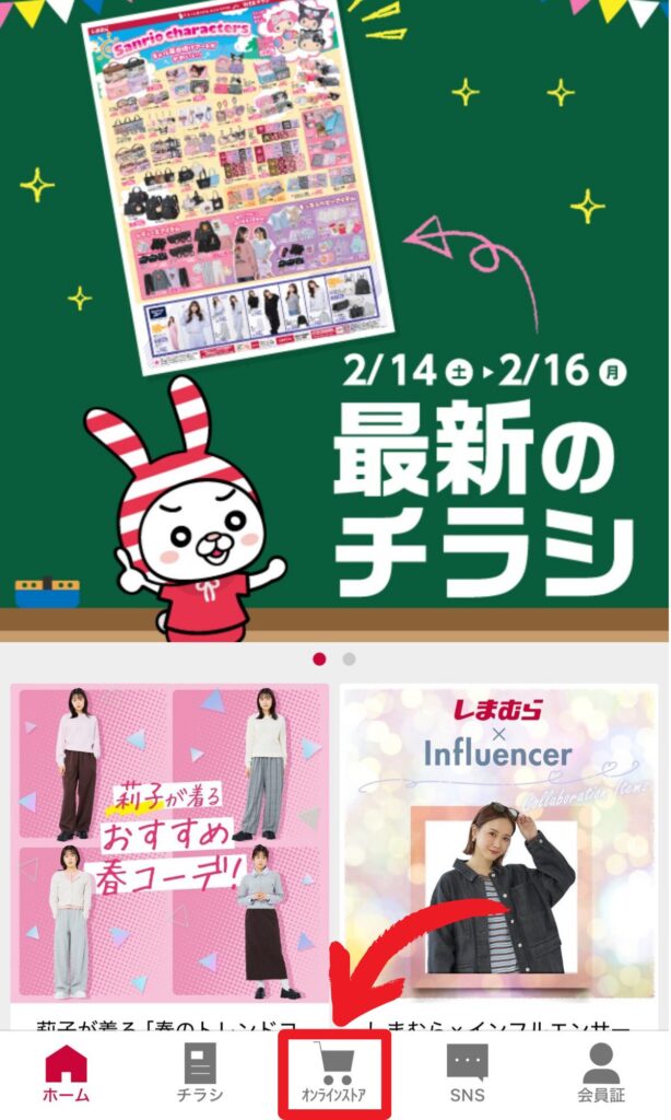①アプリ下のオンラインストアをタップ